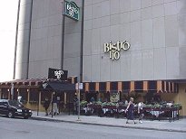 Waar waren we gebleven? Zondag eind van de middag op de hotelkamer geloof ik. We zijn inderdaad op weg gegaan naar wat eetbaars en wat muziek. Het eerste was lastig. Het geplande beste steakhouse van Chicago was zo goed dat inderdaad heel Chicago er leek te zitten. Anderhalf uur wachttijd. Via wat andere (afgekeurde) restaurantjes en een kleine Barnes&Noble boekhandel toch maar het beste restaurant van Chicago volgens de moeder van de Lonely Planet-schrijver gekozen: Bistro 110. We hadden geluk, geen wachttijd en een redelijk ruime tafel in een verder erg druk restaurant. Met enig gevoel voor schaamte allebei een bier besteld in een Franse atmosfeer waar wijn zo'n beetje verplicht leek. Wel een ruime bier-keuze en gelukkig ook Sam Adams draft. Michael gekozen voor steak met pepersaus en Jasper gaat voor een filet-nog iets. Dit alles afgesloten met echte cappuccino! Op zich heel redelijk, maar het beste restaurant van Chicago...?