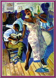 Ondanks erg moeie voeten toch besloten richting Near North te gaan alwaar de blues te horen zou moeten zijn. We hadden overdag gecheckt en er zou in de club 'Blue Chicago' een 'CD release party' voor de 'Mojo Mama's' zijn. Volgens de Lonely Planet een club waar je doorsnee, maar altijd goeie blues hoort. 6 dollar toegang betaald, en een keurig plekje gevonden een beetje achterin. Muziek niet te hard, niet rokerig en wel bier! Perfect. De Mojo Mama's bleek te bestaan uit een groep heren en een zingende dame. Mojo Mama dus. Maar de blues was goed. Inderdaad een beetje doorsnee, maar goed uitgevoerd en erg melancholisch. Na de eerste sessie die om ongeveer 10 uur stopte moesten we 45 minuten wachten en toen kwam de nog betere tweede sessie. Heerlijk! Nadeel, probeer eens weg te komen bij een live blues band. De benen weigeren op te staan en de mond vraagt om meer bier. 5 biertjes verder was er om 12 uur gelukkig weer een break. De kans om weg te komen en terug te lopen naar het hotel. Maar zeer de moeite waard!