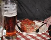 Gelukkig is er aan de overkant de Pizzeria Due die van dezelfde keten is en wel wat plaats heeft. Michael bestelt een kleine Pizza Uno en Jasper een kleine Pizza Pepperoni. Vooraf wat salade genomen voor de vitamientjes en wat bier voor het buikje. En toen de pizza. De kleine Pizza Chicago style was inderdaad niet bijzonder groot, maar zeeeeer gevuld. Het had meer weg van een groentetaart (Michael) of een kaastaart (Jasper). De eerste kwart ging nog wel, maar het tweede kwart heeft vele minuutjes zweten gekost. En de derde en vierde kwart hebben we niet eens overwogen. Gelukkig waren we niet de enige met moeite, want de obers kwamen regelmatig langslopen met minder-dan-half-leeggegeten pizzapannen. Was een beetje het Hawaii-Pizzahut gevoel.
