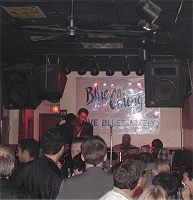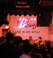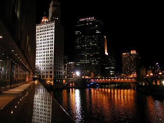 Met volle maag strompelen we naar Blue Chicago. Een keer goed altijd goed? Helaas, de lokatie op nr. 736 blijkt een besloten feestje te hebben. Dus maar door naar de lokatie op nummer 536. Deze is wat kleiner en hangt vol met diverse Blue Chicago souvenirs. Wel live muziek, en inderdaad heeft de Lonely Planet gelijk: ook deze muziek is goed. Iets minder dan zondagavond en het is ook een heel stuk drukker. Toch de moeite waard en ruim een uur van de muziek en de Blues genoten. Na afloop lopen we nog even bij de buren langs, de officiele 'Blue Chicago Souvenir Shop' (Nee, helemaal niet commercieel) om daar wat echte Blue Chicago-CD's te kopen. Daarna nog even naar Michigan Bridge om wat avondfoto's van downtown te nemen. Bij gebrek aan WC's snel een taxi genomen naar het hotel. De verkiezingsstrijd is nog onbeslist en dus kunnen we rustig weer gaan slapen.